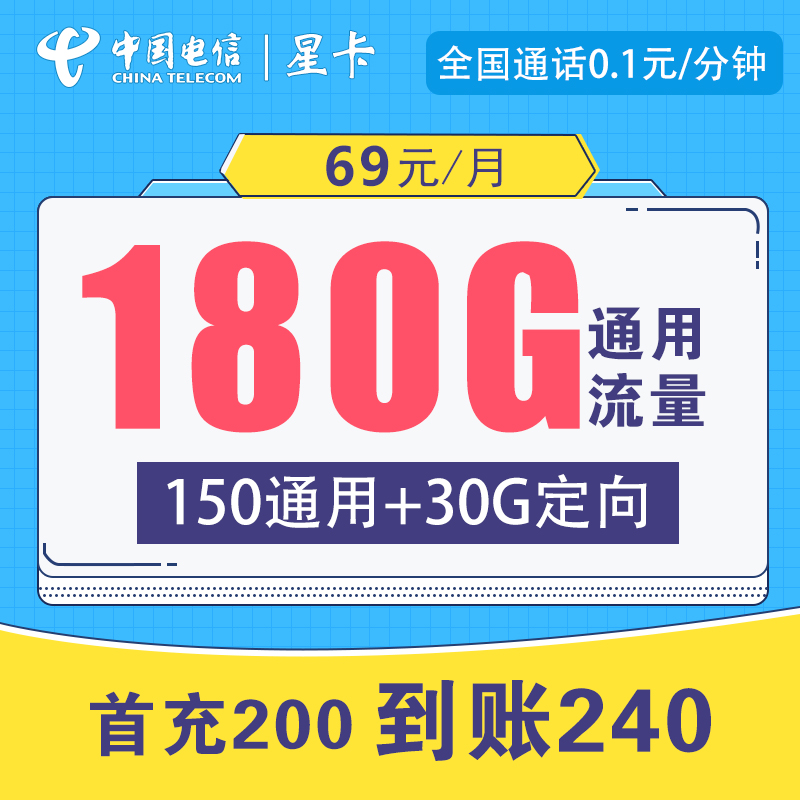29元/月=150G通用流量+30G定向 无语音功能