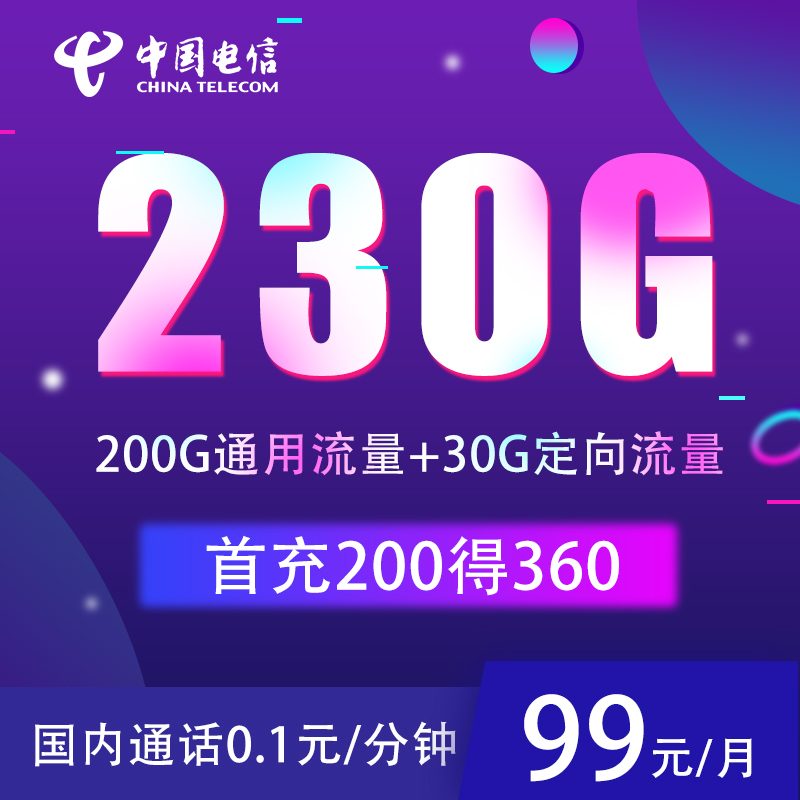 49元/月=200G通用流量+30G定向 无语音功能